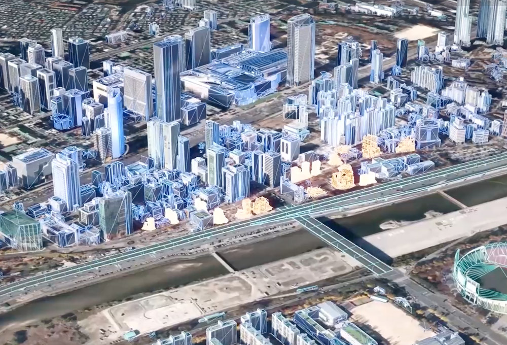 도시 규모의 공간을 디지털 환경에 정밀하게 복제하는 디지털 트윈 기술을 연구합니다. 차선, 도로, 건물 등 도시 전역을 3D 데이터로 구축할 수 있는 핵심 기술을 개발합니다.