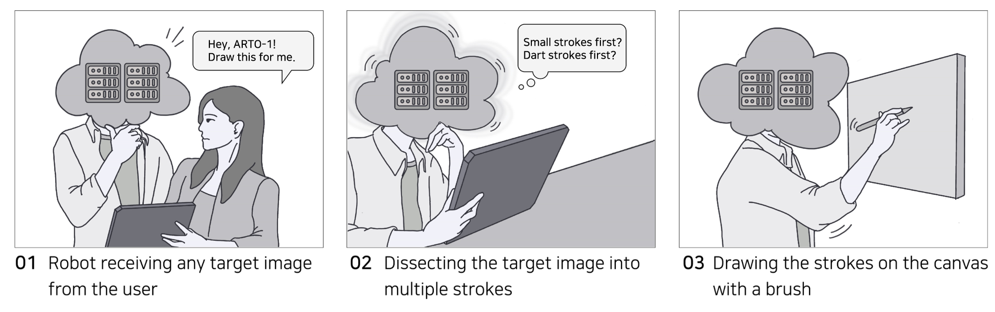 When people draw on paper or tablet PCs, they hold a brush or pen and freely adjust the force, speed, and angle to draw pictures. This seemingly simple task is quite difficult for robots. Most robots are optimized for simple, repetitive tasks in factories. If we make them draw as humans do, it’s likely for the brush to snap, the paper to rip, or the tablet PC to break.